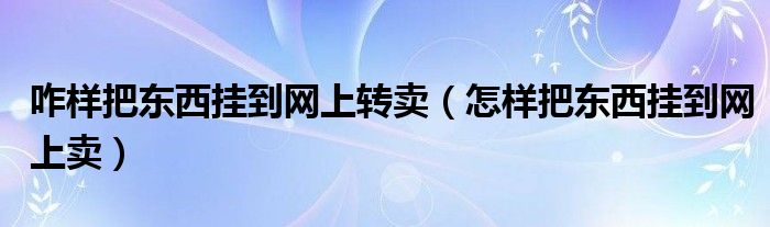 大家好,小晋来为大家解答以下问题,关于咋样把东西挂到网上转卖,怎样把东西挂到网上卖很多人还不知道,今天让我们一起来看看吧!
