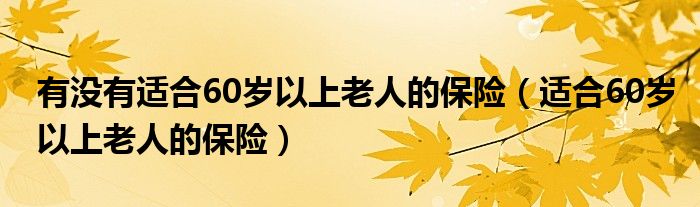 关于有没有适合60岁以上老人的保险,适合60岁以上老人的保险这个很多人还不知道,今天菲菲来为大家解答以上的问题,现在让我们一起来看看吧!