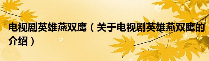 电视剧英雄燕双鹰(关于电视剧英雄燕双鹰的介绍)