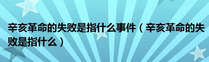 辛亥革命的失败是指什么事件(辛亥革命的失败是指什么)