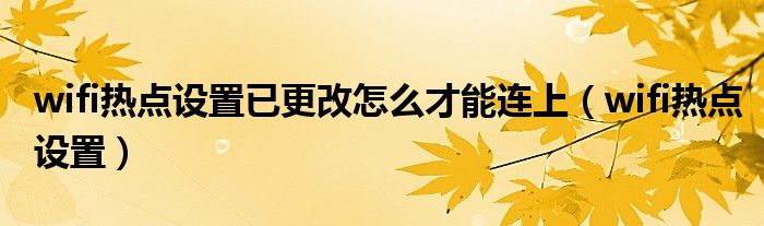 wifi热点设置已更改怎么才能连上(wifi热点设置)