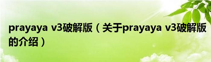 prayaya v3破解版(关于prayaya v3破解版的介绍)