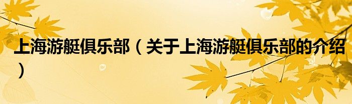 大家好,今天小乐来为大家解答以上的问题。上海游艇俱乐部,关于上海游艇俱乐部的介绍很多人还不知道,现在让我们一起来看看吧!