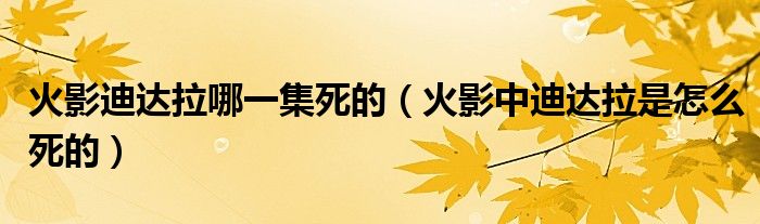 关于火影迪达拉哪一集死的,火影中迪达拉是怎么死的这个很多人还不知道,今天菲菲来为大家解答以上的问题,现在让我们一起来看看吧!