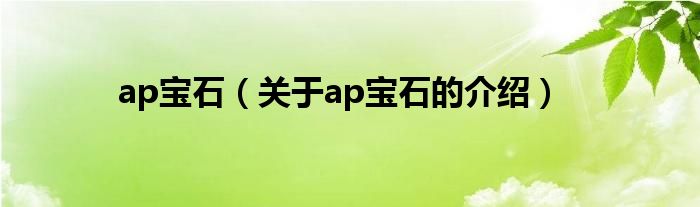 大家好,今天小乐来为大家解答以上的问题。ap宝石,关于ap宝石的介绍很多人还不知道,现在让我们一起来看看吧!
