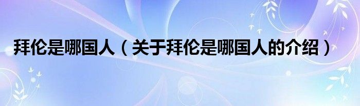 大家好,今天小乐来为大家解答以上的问题。拜伦是哪国人,关于拜伦是哪国人的介绍很多人还不知道,现在让我们一起来看看吧!