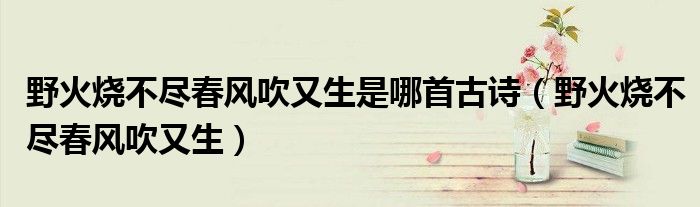 关于野火烧不尽春风吹又生是哪首古诗,野火烧不尽春风吹又生这个很多人还不知道,今天菲菲来为大家解答以上的问题,现在让我们一起来看看吧!