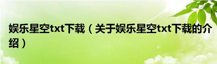 娱乐星空txt下载(关于娱乐星空txt下载的介绍)