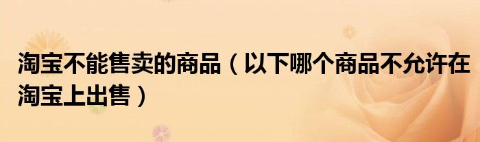 关于淘宝不能售卖的商品,以下哪个商品不允许在淘宝上出售这个很多人还不知道,今天菲菲来为大家解答以上的问题,现在让我们一起来看看吧!