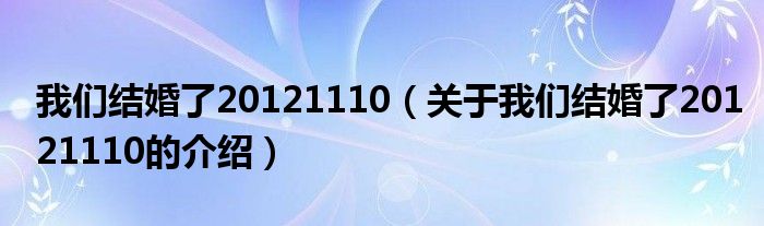 大家好,今天小乐来为大家解答以上的问题。我们结婚了20121110,关于我们结婚了20121110的介绍很多人还不知道,现在让我们一起来看看吧!