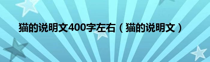 关于猫的说明文400字左右,猫的说明文这个很多人还不知道,今天菲菲来为大家解答以上的问题,现在让我们一起来看看吧!