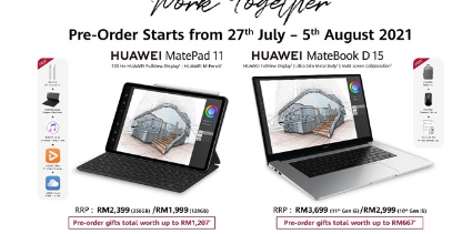除此之外,Huawei Malaysia 也刚刚公布了配备 8GB RAM的MateBook D15第 10 代和第 11 代 Intel Core i5的免费赠品分别为 RM2999 和 RM3699,MateBook D14第 10 代 Intel Core i3 的售价为 RM2699 和配备 AMD Ryzen 4000H 系列处理器的Matebook 14 RM3999。MateBooks 预购期与 MatePad 相同,因此以下是每种型号的免费赠品: