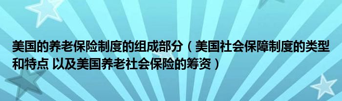 关于美国的养老保险制度的组成部分,美国社会保障制度的类型和特点 以及美国养老社会保险的筹资这个很多人还不知道,今天菲菲来为大家解答以上的问题,现在让我们一起来看看吧!
