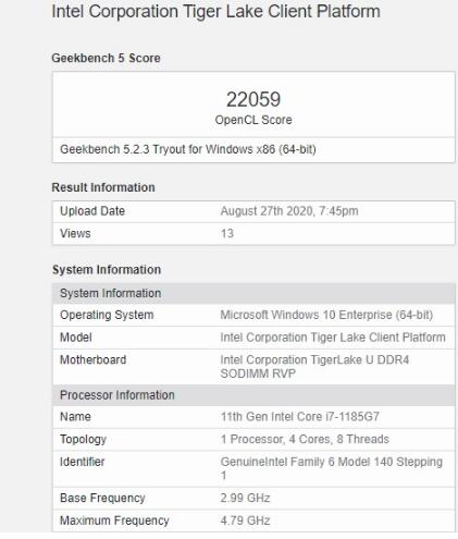 Tiger Lake家族的旗舰Intel Core i7-1185G7处理器的新基准比较了集成显卡核心和分立显卡的性能。事实证明,Core i7-1185G7中使用的DG1 GPU在性能上胜过GeForce GTX 1050 Ti。