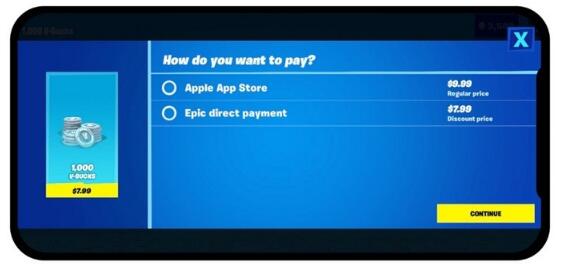 请务必注意,仍然可以使用Apple和Google的付款系统在Fortnite中进行购买。但是,Epic Games鼓励玩家以20%的折扣使用他们的系统。