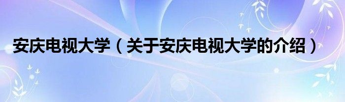 大家好,今天小乐来为大家解答以上的问题。安庆电视大学,关于安庆电视大学的介绍很多人还不知道,现在让我们一起来看看吧!