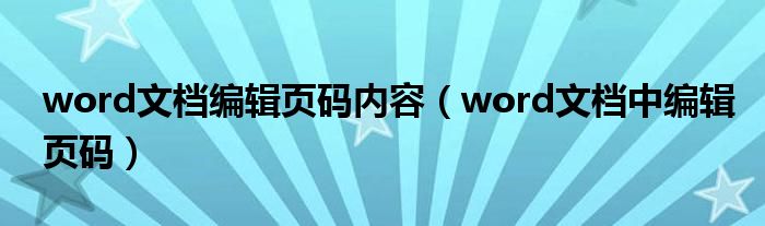 word文档编辑页码内容(word文档中编辑页码)