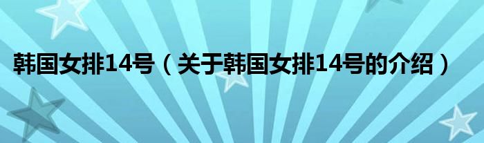 大家好,今天小乐来为大家解答以上的问题。韩国女排14号,关于韩国女排14号的介绍很多人还不知道,现在让我们一起来看看吧!