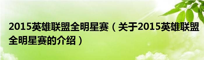 2015英雄联盟全明星赛(关于2015英雄联盟全明星赛的介绍)