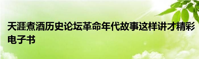 关于天涯煮酒历史论坛革命年代故事这样讲才精彩电子书这个很多人还不知道,今天菲菲来为大家解答以上的问题,现在让我们一起来看看吧!