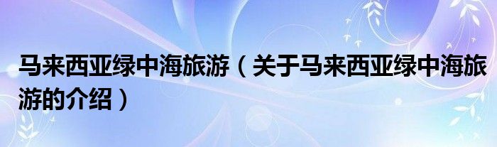 马来西亚绿中海旅游(关于马来西亚绿中海旅游的介绍)