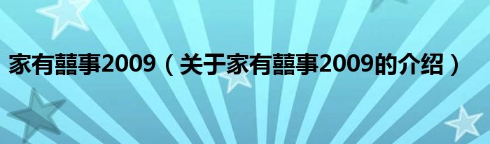 大家好,今天小乐来为大家解答以上的问题。家有囍事2009,关于家有囍事2009的介绍很多人还不知道,现在让我们一起来看看吧!