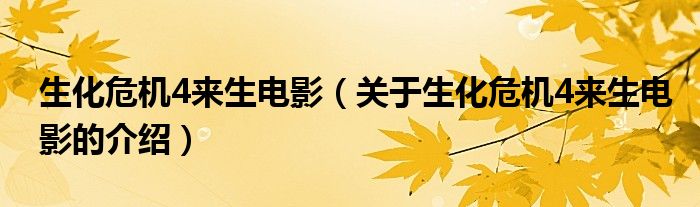 生化危机4来生电影(关于生化危机4来生电影的介绍)