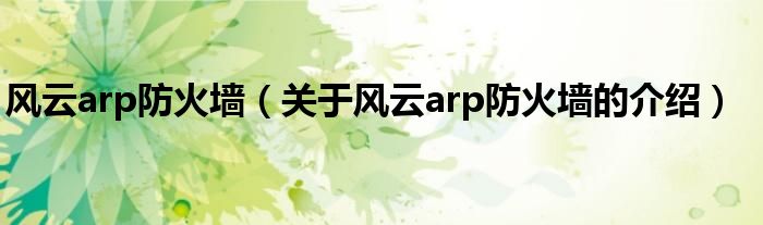 风云arp防火墙(关于风云arp防火墙的介绍)