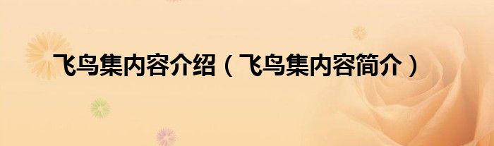 飞鸟集内容介绍(飞鸟集内容简介)