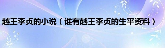 关于越王李贞的小说,谁有越王李贞的生平资料这个很多人还不知道,今天菲菲来为大家解答以上的问题,现在让我们一起来看看吧!