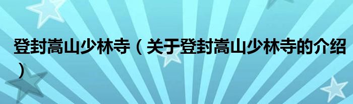 登封嵩山少林寺(关于登封嵩山少林寺的介绍)