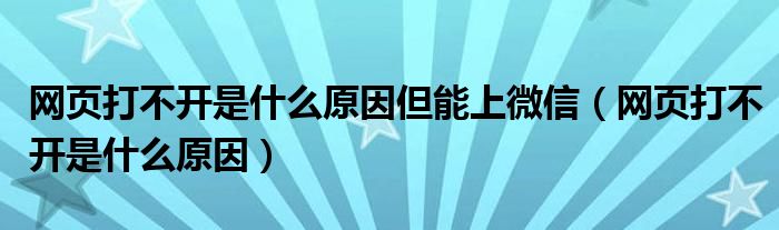 大家好,小飞来为大家解答以上问题,网页打不开是什么原因但能上微信,网页打不开是什么原因很多人还不知道,现在让我们一起来看看吧!