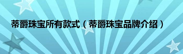 大家好,小源来为大家解答以上问题。蒂爵珠宝所有款式,蒂爵珠宝品牌介绍很多人还不知道,现在让我们一起来看看吧!