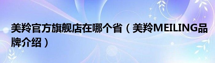 大家好,小源来为大家解答以上问题。美羚官方旗舰店在哪个省,美羚MEILING品牌介绍很多人还不知道,现在让我们一起来看看吧!