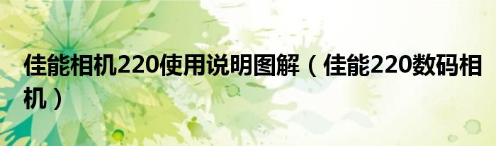 大家好,小飞来为大家解答以上问题,佳能相机220使用说明图解,佳能220数码相机很多人还不知道,现在让我们一起来看看吧!