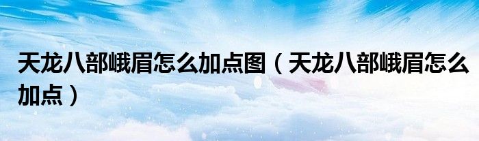 天龙八部峨眉怎么加点图(天龙八部峨眉怎么加点)