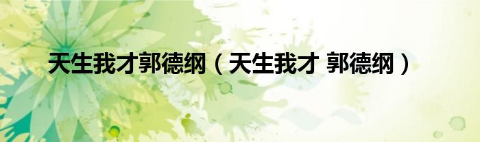 天生我才郭德纲(天生我才 郭德纲)