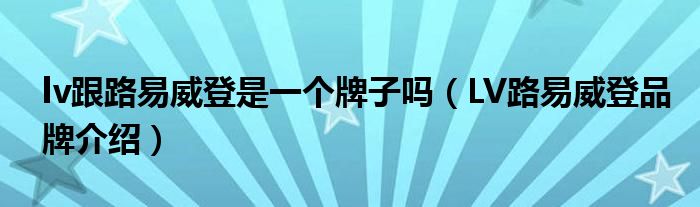 大家好,小源来为大家解答以上问题。lv跟路易威登是一个牌子吗,LV路易威登品牌介绍很多人还不知道,现在让我们一起来看看吧!