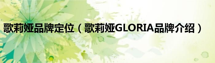大家好,小源来为大家解答以上问题。歌莉娅品牌定位,歌莉娅GLORIA品牌介绍很多人还不知道,现在让我们一起来看看吧!