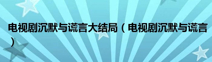 电视剧沉默与谎言大结局(电视剧沉默与谎言)