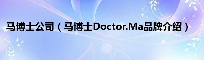 大家好,小源来为大家解答以上问题。马博士公司,马博士Doctor.Ma品牌介绍很多人还不知道,现在让我们一起来看看吧!