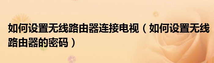 大家好,小飞来为大家解答以上问题,如何设置无线路由器连接电视,如何设置无线路由器的密码很多人还不知道,现在让我们一起来看看吧!