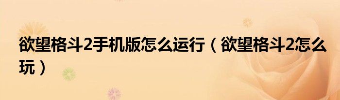大家好,小飞来为大家解答以上的问题。欲望格斗2手机版怎么运行,欲望格斗2怎么玩这个很多人还不知道,现在让我们一起来看看吧!