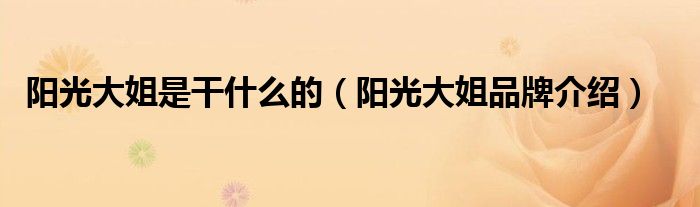 阳光大姐是干什么的(阳光大姐品牌介绍)