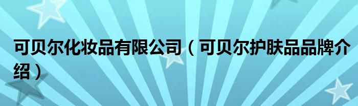 大家好,小源来为大家解答以上问题。可贝尔化妆品有限公司,可贝尔护肤品品牌介绍很多人还不知道,现在让我们一起来看看吧!