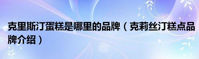 大家好,小源来为大家解答以上问题。克里斯汀蛋糕是哪里的品牌,克莉丝汀糕点品牌介绍很多人还不知道,现在让我们一起来看看吧!