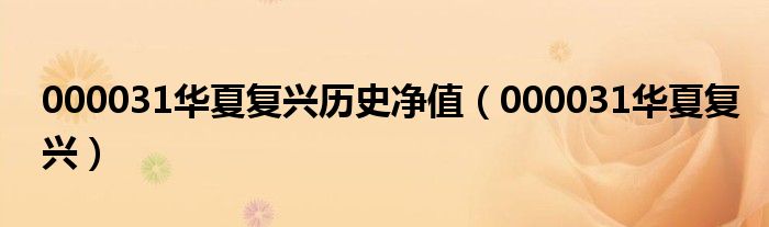000031华夏复兴历史净值,000031华夏复兴这个很多人还不知道,小飞来为大家解答以上的问题。现在让我们一起来看看吧!