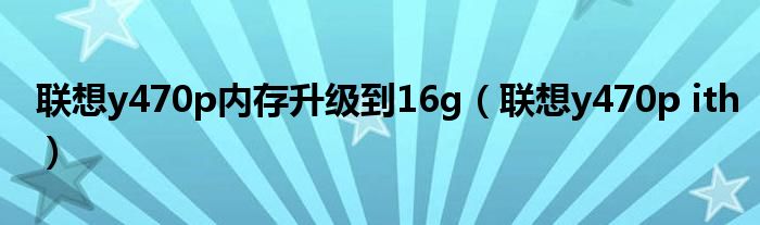 联想y470p内存升级到16g,联想y470p ith很多人还不知道,乐乐来为大家解答以上问题,现在让我们一起来看看吧!