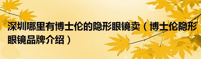 大家好,小源来为大家解答以上问题。深圳哪里有博士伦的隐形眼镜卖,博士伦隐形眼镜品牌介绍很多人还不知道,现在让我们一起来看看吧!