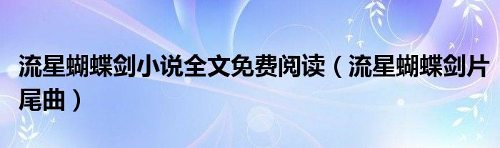 大家好,小飞来为大家解答以上的问题。流星蝴蝶剑小说全文免费阅读,流星蝴蝶剑片尾曲这个很多人还不知道,现在让我们一起来看看吧!